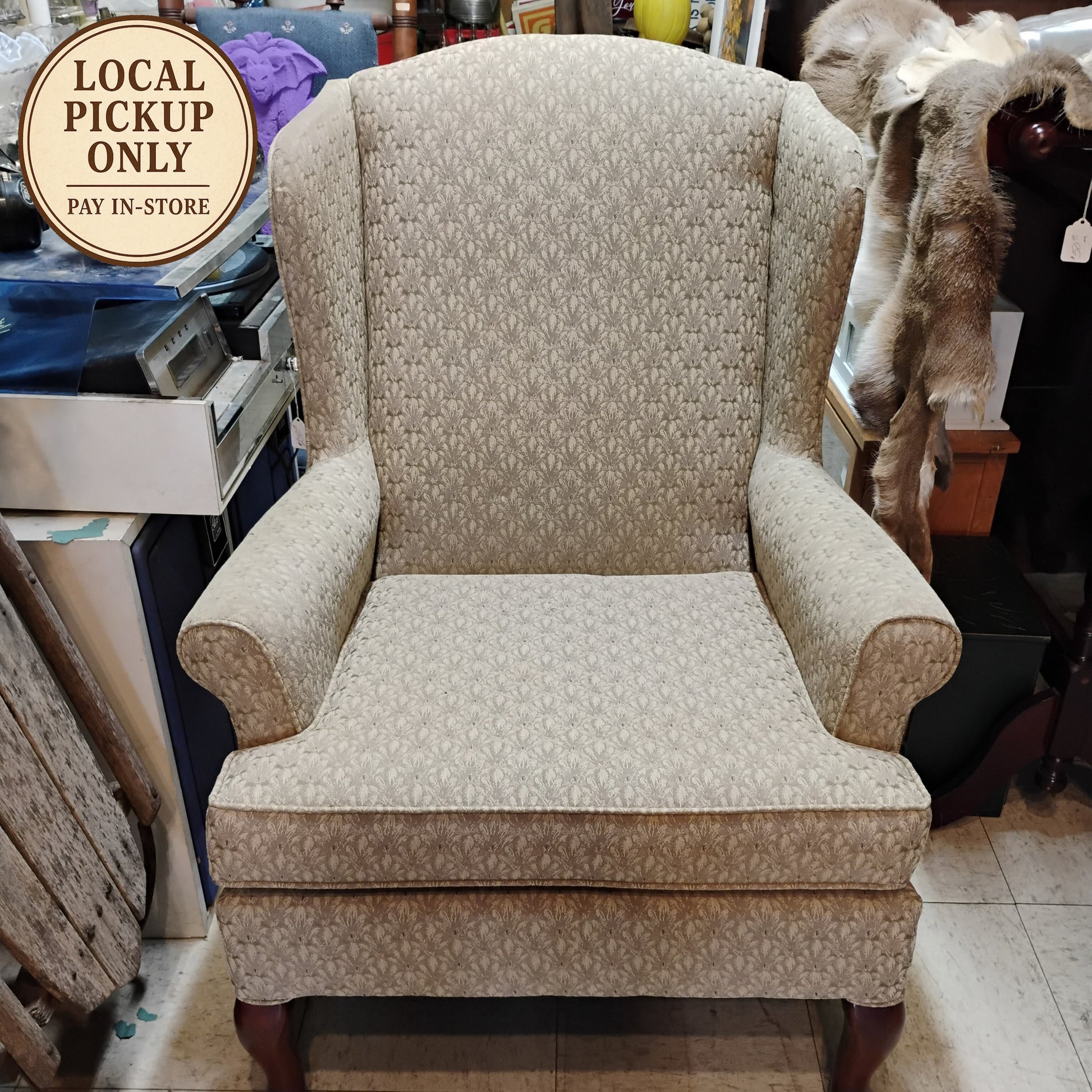 Add timeless charm and comfort to any room with this vintage large wingback chair. Featuring classic high-backed styling with graceful wings and sturdy wooden legs, this chair makes a stunning statement piece in your home or office. Its generous size offers extra comfort and presence — perfect for a cozy reading nook, elegant sitting area, or fireside retreat.